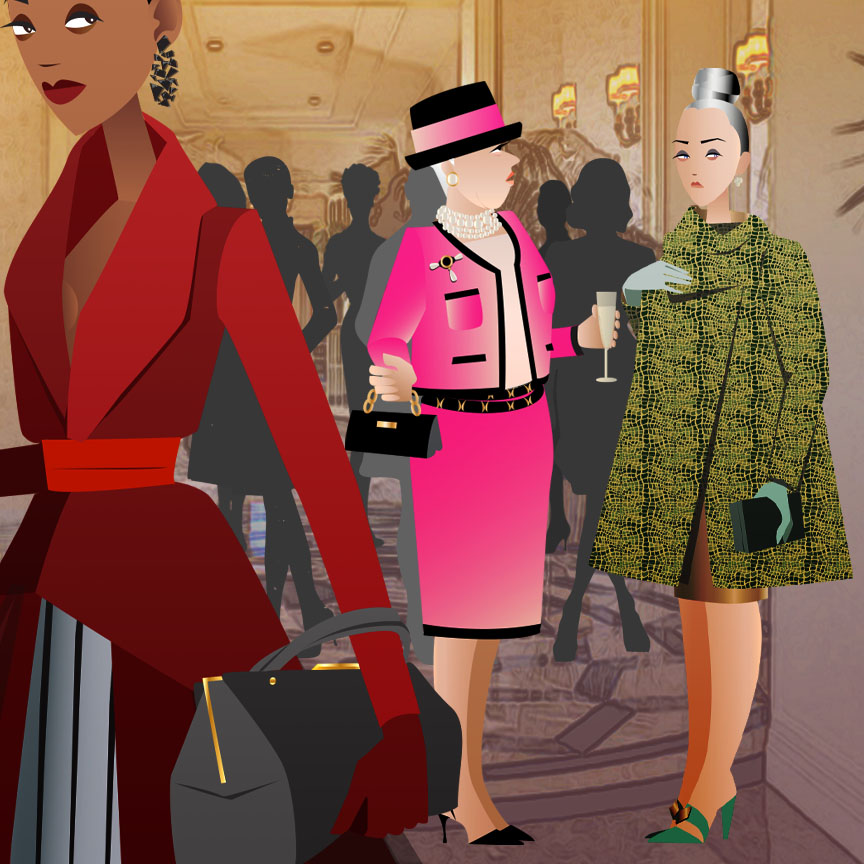 Mrs. Boris Claptrap corners Belle like a possessive old cat. Belle is the realtor who found the Claptrap’s magnificent 13-room penthouse on East 71st. AND a small condo several floors below for Boris’ little girlfriend. I eavesdrop on their convo as Mrs. Claptrap asks Belle about the real estate market. Belle starts to stammer. It’s been a few years now since kissing her A-list real estate days goodbye, but the brutal shift from the A-listers club to the strip club still rattles her. Thankfully, the lights begin to flicker. It’s time to take our seats for the fashion show.